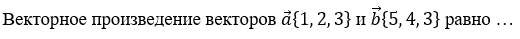 Векторное произведение векторов a{1, 2, 3} и b{5, 4, 3} равно