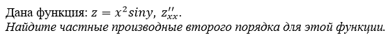 Дана функция: z=x2*sinY, Z''xx Найдите частные производные второго порядка для этой функции.