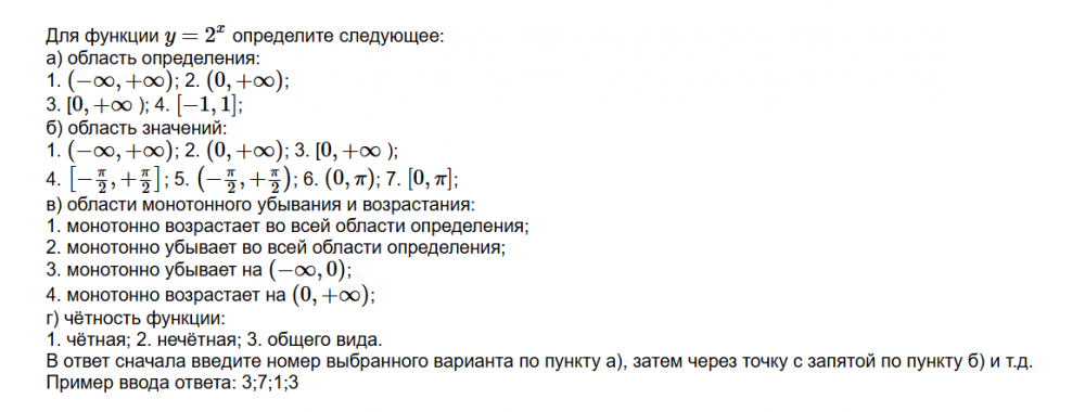 Для функции y=2x определите следующее: a) область определения: 1. - Ответ на вопрос №249948