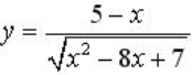 Областью определения функции y = (5 − x) / √(x² − 8x + 7) является: