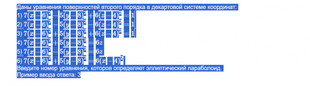 Введите номер уравнения, которoe определяет эллиптический параболоид.