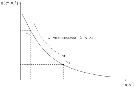 Первый квадратичный член критерия (4.1) минимизирует дисперсию ошибки управления, второй – ограничивает дисперсию (мощность) управляющего воздействия. Типичная кривая, связывающая дисперсию ошибки управления и дисперсию управления, приведена на рис. 2.