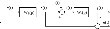 | X (p) = Wф(p)V(p) F(p) = X(p) + N(p) E(p) = X(P) - Y(p) Y(p) = Wз(p)F(p), | (1) |