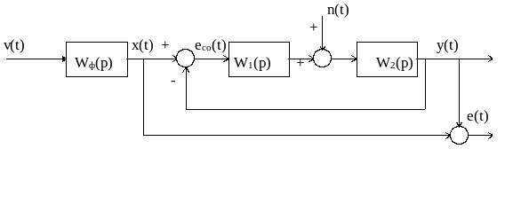 | X (p) = Wф(p)V(p) F(p) = X(p) + N(p) E(p) = X(P) - Y(p) Y(p) = Wз(p)F(p), | (1) |