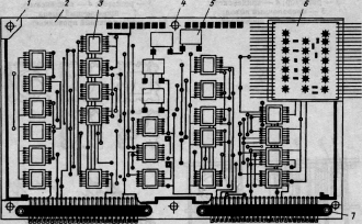 Третье поколение РЭС характеризуется применением новой элементной базы — корпусированными ИС широкого применения и миниатюрными ЭРЭ на печатных платах с высокой разрешающей способностью (до 0,3 мм).Микросхемы, по своей функциональной сложности представляющие функциональные узлы, выпускались в те годы в металлических, пластмассовых иметаллокерамических корпусах прямоугольной и круглой формы со штырьевыми и плоскими выводами. Число выводов не превышало 15. Микросхемы в количестве 20...30 штук компоновались на печатных платах со средними размерами 140x170 мм, выводная коммутация с которых осуществлялась стандартными разъемами. Такая конструкция,наиболее характерная для цифровых устройств, получила название вначале субблока, а позднее — функциональной ячейки (рис. В.6).