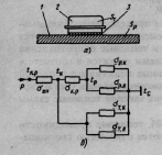радиаторе с площадью теплоотводящей поверхности Sp (рис. 5.14, а), к среде, если на кристалле транзистора выделяется мощность Р.Тепловая схема приведена на рис5.14,.