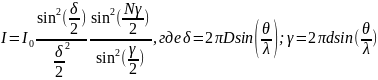 десь d – период решетки, m – целое число, (порядком дифр-го максимума). В точках где это условие выполнено, располагаются главные максимумы дифракционной картины.