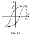 Ферромагнетики – это вещества, обладающие самопроизвольной намагниченностью, которая сильно изменяется под влиянием внешних воздействий – магнитного поля, деформации, температуры. Для ферромагнетиков характерно явление магнитно гистерезиса: связь между B и H и J и H оказывается неоднозначной, а определяется предшествующей историей намагничивания ферр-ка. на рисунке петля гистерезиса.