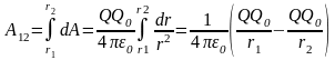 Работа при перемещении Q0 из точки 1 в точку 2.
