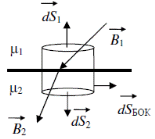 Рассмотрим плоскую границу раздела двух магнетиков, с обеих сторон от которой магнитное поле можно считать однородным. По теореме Гаусса для магнитного поля