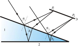 Полосы равной толщины. Результат интерференции в точках Р1 и Р2 экрана определяется по известной формуле