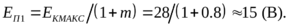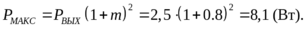 Рекомендованный для выходного каскада транзистор КТ913Б в типовом режиме применяется на выходную мощность P`ВЫХ=6 Вт на рабочей частоте 1000 МГц. На частоте 320 МГц потери меньше и, следовательно, выше КПД и транзистор может работать на большую мощность. Произведем расчет режима транзистора КТ913Б, в ходе которого будет установлена возможность его применения. Напряжение питания этого транзистора в типовом режиме EКМАКС равно 28 В (см. Приложение 1). Это напряжение требуется, однако, только в максимуме модуляции. Напряжение источника питания должно быть равно