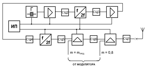 выходной усилитель, предназначенный для обеспечения необходимых энергетических характеристик электромагнитных колебаний;