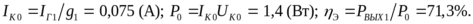 Постоянная составляющая коллекторного тока, мощность, потребляемая от источника питания, и электронный КПД соответственно.
