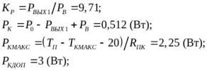 Для выбранного транзистора величина максимальной мощности, рассеиваемой коллектором PКДОП=5 Вт. Так как 0,5238<5, транзистор может работать в данном режиме.