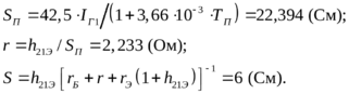 Параметры транзистора даны в приложении (см. Приложение 1). Заметим, что при фактическом напряжении питания, сильно отличающемся от типового, следует внести поправку на параметры fГР и CК. Можно считать, что с уменьшением вдвое напряжения EК ёмкость CК возрастает на 25%, а частота fГР падает на 15%. Для транзистора КТ904А, работающего в УЧ при напряжении 15 В, примем CК=7,5 пФ, fГР=510 МГц.