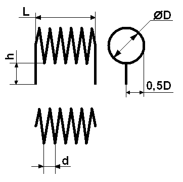 | Схемное имя | D, мм | L, мм | Кол-во витков | d, мм |