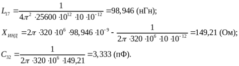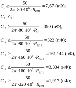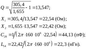 Перед началом расчётов необходимо задаться емкостью CП. Пусть C14=CП=10 пФ. Произведя расчет по формулам (150) получим: