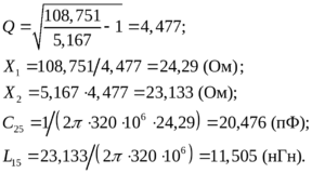Расчёт элементов Г-образной цепочки согласования C25-L15 произведем по формулам (146). RВХС=108,751 Ом, RВЫХС=5,167 Ом.
