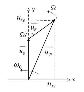 , постоянна для каждой частотной составляющей этой полосы, поэтому для воcстановления передаваемого информационного сигнала UF(t) на выходе детектора необходимо восстановить колебания несущей частоты U0 на выходе приемника (например, с использованием местного гетеродина). При этом результирующее напряжение на выходе детектора определяется векторной суммой: