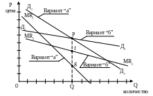 б) На изменение цены фирмы А остальные фирмы отрасли не реагируют .(рис 4.1.1.) Д2Д2 – спрос и MR2MR2 – предельный доход фирмы А по данному варианту)