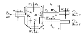 Рис. Кольцевое гибридное соединение на П – четырехполюсниках.
