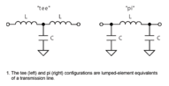 Рис. Т- и П- четырехполюсниками на сосредоточенных элементах, эквивалентных λ/4 отрезку линии передачи.