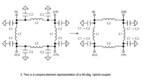 Гибридные устройства дециметрового и метрового диапазона на отрезках линий передачи длиною, кратной λ/4, имеют большие габариты. Четырехполюсник отрезка линии передачи может быть заменен Т- или П- четырехполюсниками на сосредоточенных (реактивных) элементах (LC - элементах). Последние более частотнозависимы.