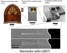В настоящее время с использованием нанокомпонентов на основе углеродных нанотрубок создаются более сложные устройства, например супергетеродинный приёмник. Блоки, использующие углеродные нанотрубки, выделены на этой схеме синим цветом, к ним относятся: