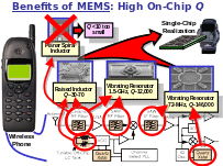 По электрическим и магнитным параметрам МЭМС могут превосходить традиционные радиоэлементы, например, это более широкие диапазоны рабочих частот, нулевое потребление энергии в состоянии покоя, более высокая добротность подвесной катушки индуктивности. Используются другие виды энергии: механическая (статическая), акустическая (волновая), тепловая.