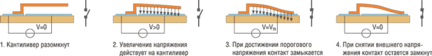 Рис. Электростатическое управление консолью. Контакт остается (4), пока заряд – на электроде.