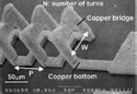 Реализация подвесных конструкций катушек индуктивности позволяет получить более высокую добротность в более высоком частотном диапазоне. Это достигается с помощью подвешенной конструкции при удалении части материала подложки под катушкой индуктивности. В результате уменьшается влияние паразитных параметров. Катушки индуктивности являются ключевыми элементами резонансных контуров, обеспечивающих, в частности, согласование импеданса сети, работу малошумящих усилителей и генераторов, управляемых напряжением (ГУН).