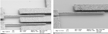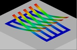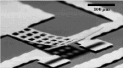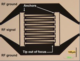 Рис. Изменение емкости встречно-штыревой структуры достигается градиентом механических напряжений при нагревании. Для реализации эффекта используются биметаллические композиции, сплавы с памятью формы (6/7 Al fingers, 1µm thick, 300µm long, 20µm wide and 5µm spaced).