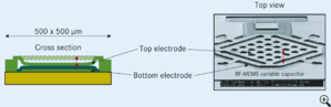 Конденсаторы с изменяемой ёмкостью MEMS - варакторы - могут быть выполнены на основе подвижных элементов (консолей или мембран) в виде планарных или параллельно расположенных пластин или в виде встречно-штыревой планарной структуры.