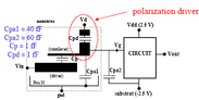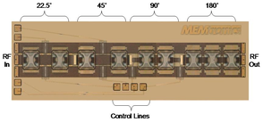 Фазовращатели состоят из каскадно соединенных варакторов (емкостные коммутаторы), инициирующих подключение отрезков линий передачи различной длины по величине требуемого фазового сдвига.