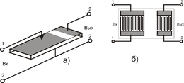 Рис. Пьезорезонаторы на ОАВ (а) и ПАВ (б).