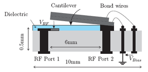 Рис. Схема МЭМС варактора на основе консоли в схеме многослойной керамики.