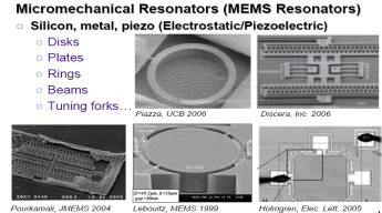Для частот менее 200 МГц используются управляемые электростатически консольные балки прямоугольные или в виде планарного гребенчатого конденсатора. Благодаря механической компоненте размеры резонаторов невелики.