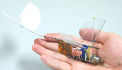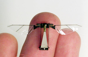 Другое перспективное направление - сверхмалые летающие роботы. Такие БПЛА практически неуязвимы во время полета - на высоте несколько сотен метров уничтожить маленький самолет почти невозможно. Его можно сбить пулей из пистолета, но вот попасть - нереально даже из снайперской винтовки. Самый маленьких из существующих беспилотных самолетов, который действует в Ираке, длиной не более метра. Однако американцы считают, что он все равно остается слишком заметным над полем боя. Поэтому сразу несколько компаний по заказу DRPA работают над проектами сверхмалых самолетов. Один из них - почти готовый к серийному производству в начале апреля начали испытывать в открытом море неподалеку от калифорнийских берегов. 33-сантиметровый Wasp, который весит всего 200 граммов, можно запускать "с руки" - совсем как игрушечный планер. Этот аппарат оснащен двумя миниатюрными видеокамерами, которые собирают информацию и передают ее оператору в режиме реального времени. Аппаратом, который разработали конструкторы калифорнийской компании AeroVironment управляет бортовой компьютер, который ориентируется при помощи спутниковой системы GPS. Он управляется электромотором, который получает энергию от аккумуляторов, подзаряжающихся во время полета от солнечных батарей.