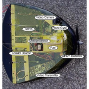 На фотографии показаны внутренности прототипа Black Widow, объединенные электрическими цепями, и антенны, расположенные в хвосте. Подсистемы включают приводы для элевонов (три микро мотора весом 1/3 грамма каждый и диаметром 3 мм), полезную нагрузку - камеру, трехосевые магнитометры, пьезоэлектрический гироскоп, GPS приемник, датчики давления, бортовой компьютер, солнечные батареи и литиевую и никель-кадмиевую батареи.