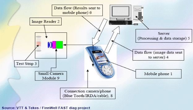 Дистанционное проведение анализов. Число таких анализов ограничено. Мобильное средство связи должно быть дополнено «лабораторией – на – чипе», микроскопом, фото- или видео- камерами.