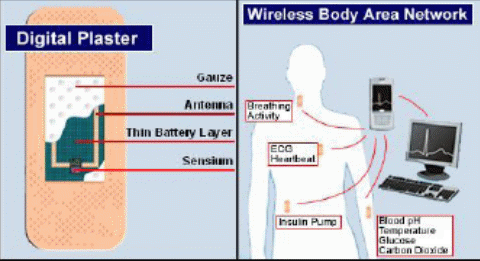 Рис. Модуль на пластыре формируют локальную сеть дистанционного мониторинга здоровья.