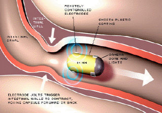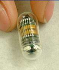 Эндоскопическая капсула – действующий прототип. Основой диагностической системы желудка является одноразовая эндоскопическая капсула М2А. Хотя размер капсулы всего 11 х 26 мм, и вес не превышает 4 г, она содержит цветную камеру, 4 источника света, радиопередатчик и батареи: Легко проглатывается (11 х 26 мм, гладкая поверхность). Продвигается за счет перистальтики. Пациент может вести обычный образ жизни во время обследования. Выводится естественным образом. Одноразового применения. Сертифицирована в Европе, США(FDA), Австралии, Израиле, России