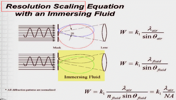 Иммерсионная литография — это технология, которая используется для улучшения проекционной литографии. Идея иммерсионной литографии заключается в том, что между маской-шаблоном и кремниевой подложкой используется дополнительная среда — жидкость. Скорость распространения света в веществе всегда меньше скорости распространения света в вакууме и зависит от коэффициента преломления этого вещества. Т.е. свет, проходящий через материал с высоким коэффициентом преломления, имеет меньшую длину волны (эффективная длина волны уменьшается в n раз, где n — коэффициент преломления среды), поэтому он может быть сфокусирован более точно.