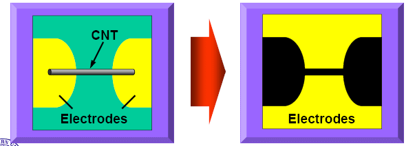 Рис. Использование нанотрубки в качестве маски для формирования узкого зазора.