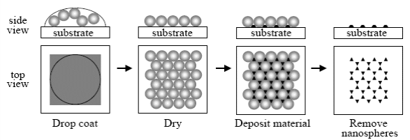 Матрицу квантовых точек можно получить литографией с использованием маски из упорядоченных наночастиц - наносфер (например, природного или искусственного опала). Капля суспензии наночастиц наносится на поверхность подложки, медленно высушивается с тем, чтобы мигрирующие частицы успели упорядочиться. Напыляемое вещество достигает поверхность подложки лишь в промежутках между сферами, образовывая квантовые точки после удаления наносфер.