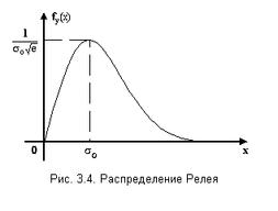 Это распределение Релея. Таким образом, распределена, например, амплитуда узкополосного нормального процесса. Это свойство нормального процесса обычно используется для моделирования процесса с заданной релеевской плотностью вероятности. Моделирование в этом случае осуществляется по формуле [3]