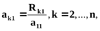 осуществляется по строкам (2.6). Сначала по (2.8) находится первый элемент