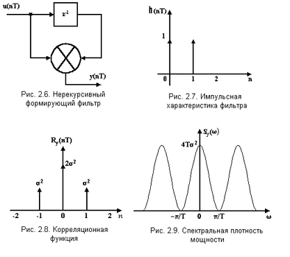 в схеме на рис. 2.3, если в качестве формирующего фильтра используется нерекурсивный фильтр (2.35). Корреляционная функция процесса