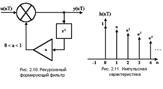 (см. рис. 2.3), если в качестве формирующего используется рекурсивный фильтр, схема которого приведена на рис. 2.10. Передаточная функция этого фильтра в соответствии с (2.36) равна
